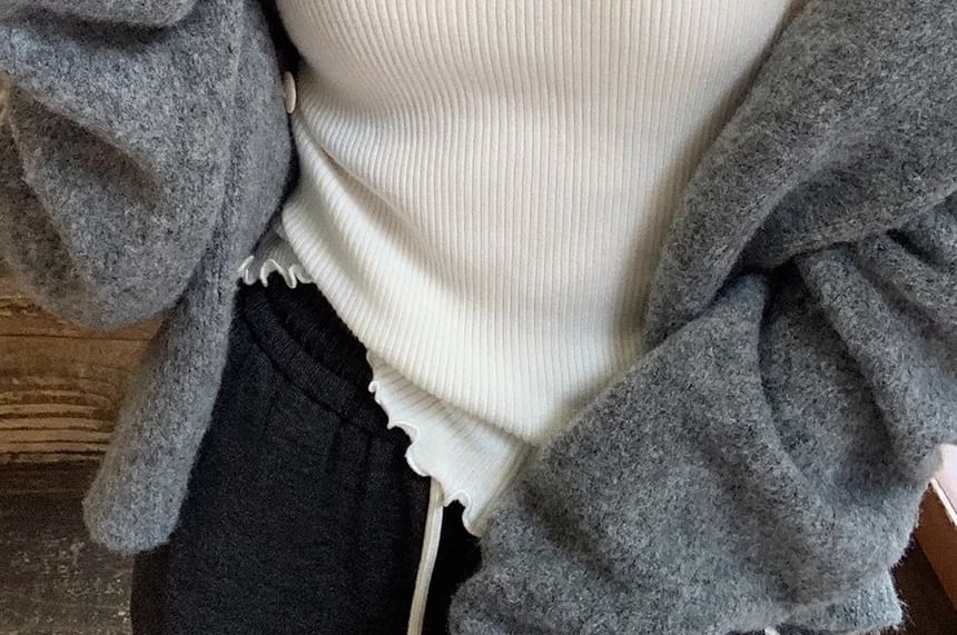 Ribbed Top Lace Plain Camisole Padded Trim