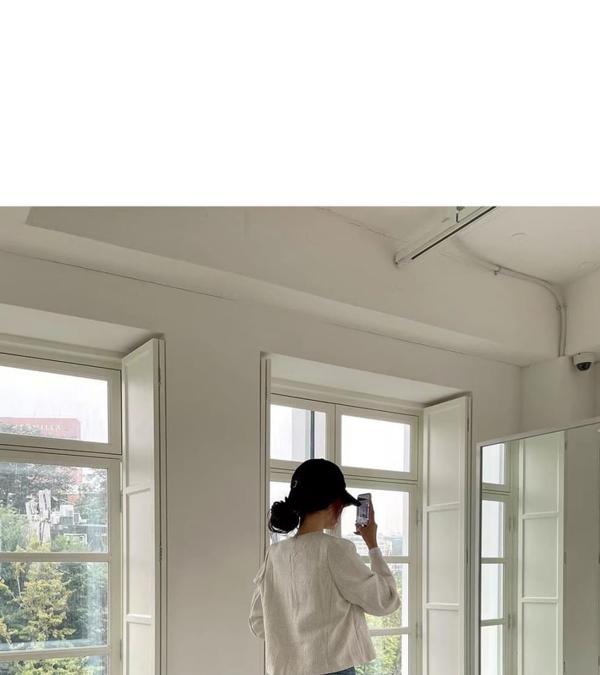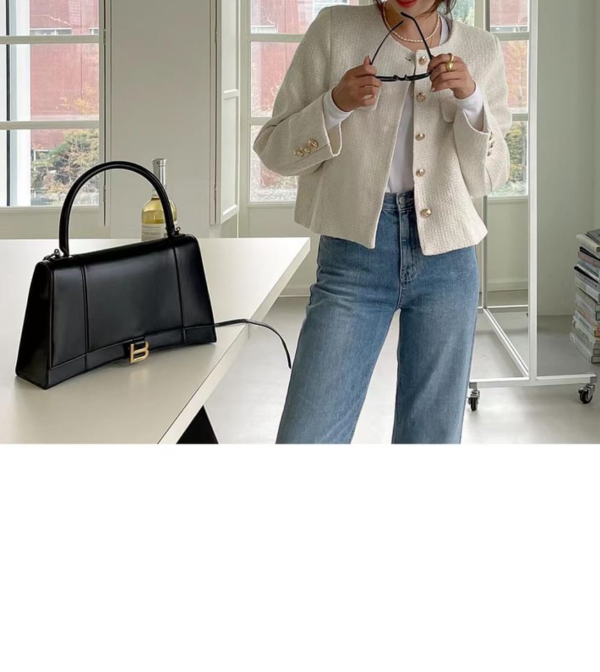Round Neck Plain Tweed Button Jacket