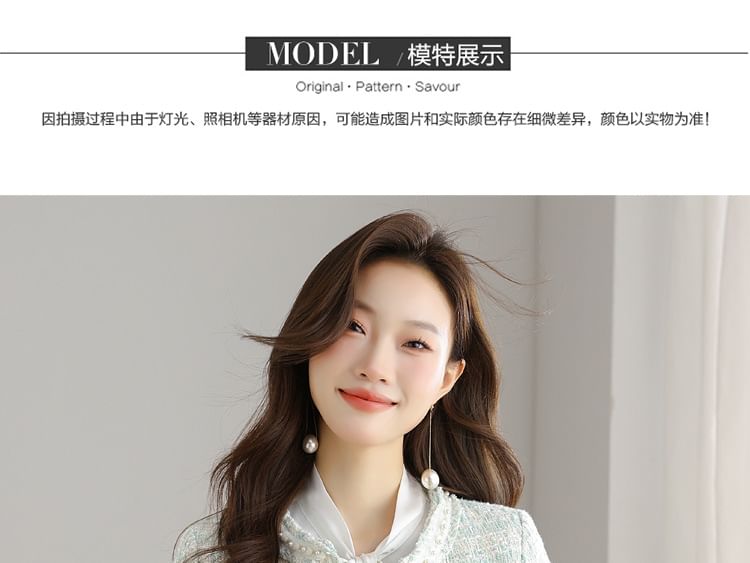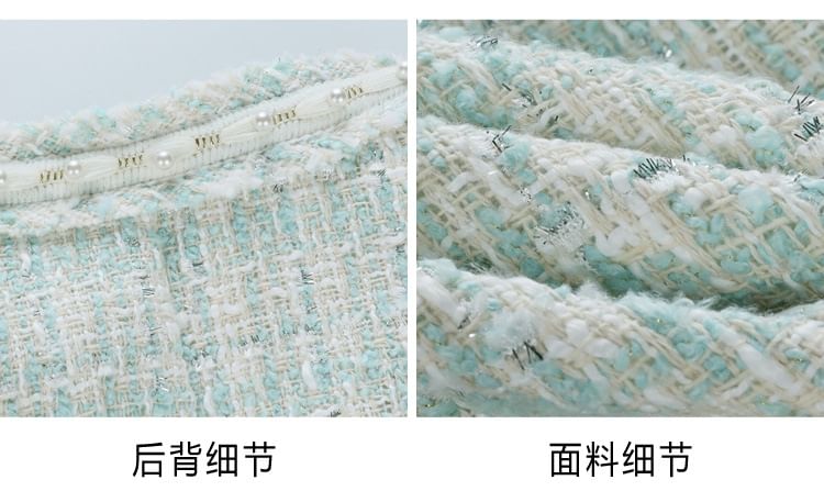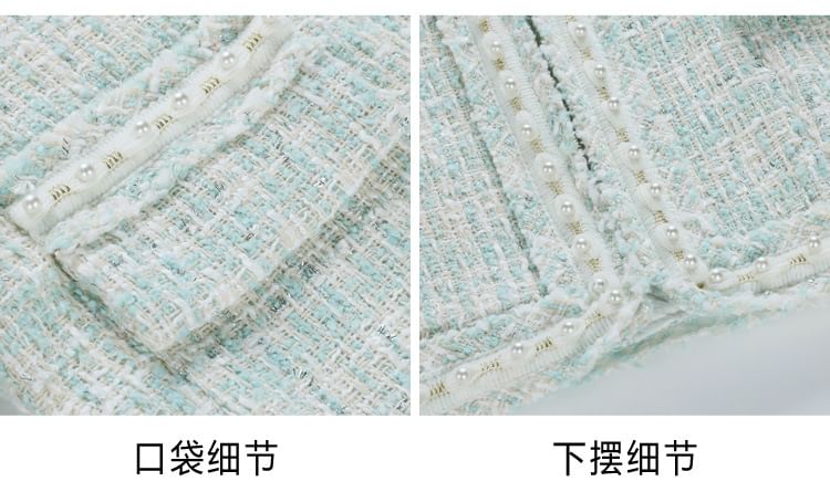 Round Neck Tweed Open Front Jacket