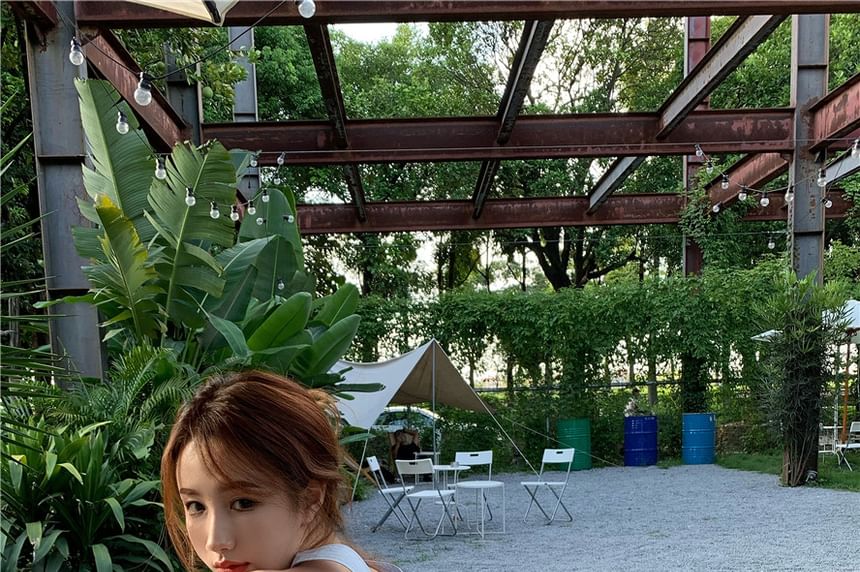Ruffled Back Top Plain Camisole Open Balloon Keyhole
