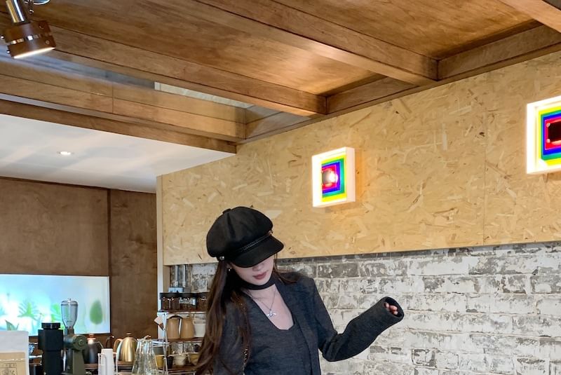 Scoop Neck Plain Button-Up Cardigan / Low Rise Hot Pants / Skinny Scarf / Set