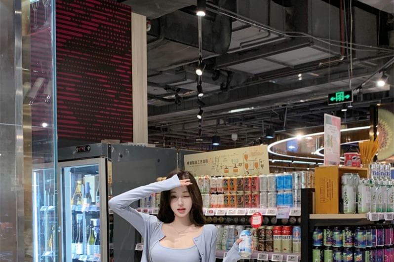 Scoop Neck Plain Crop Camisole Top / Drawstring Waist Flared Pants / Crew Neck Button-Up Cardigan