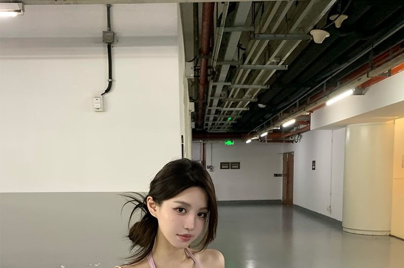 Scoop Neck Plain Side-Slit Slim Fit Halter Top
