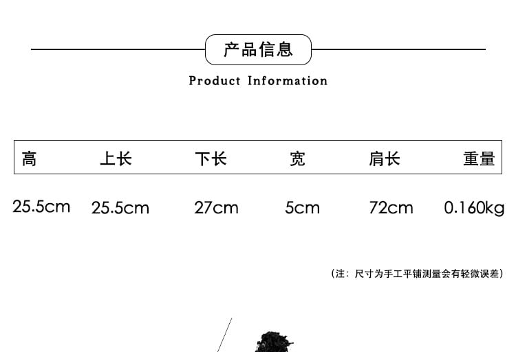 | Height | Upper Length | Bottom Length | Width | Strap Length |