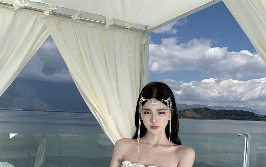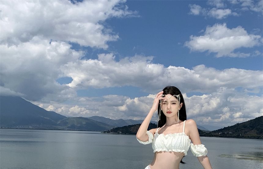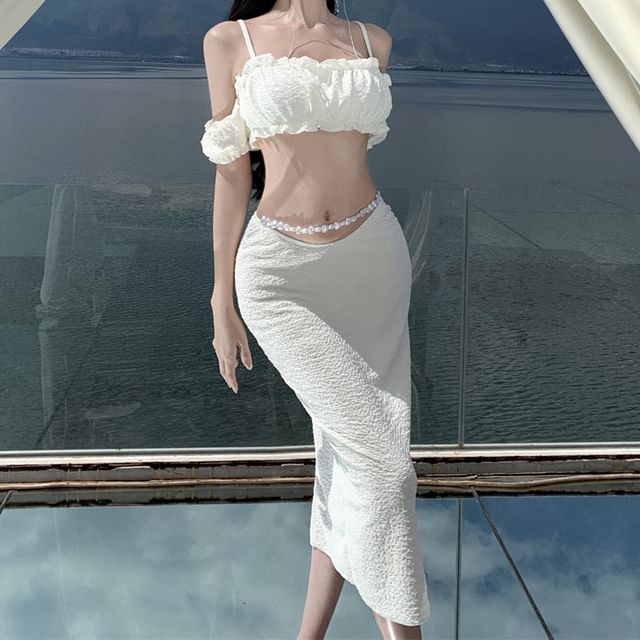 | Color: | Set of 3 - Blouse & Skirt & Faux Pearl Chain - White |