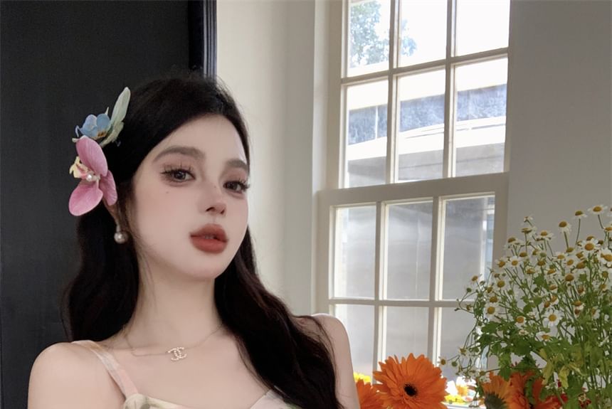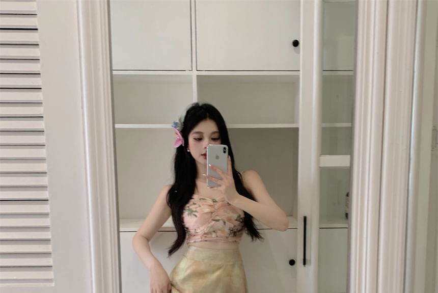 Set: Floral Cropped Cami Top + High Rise Maxi A-Line Skirt