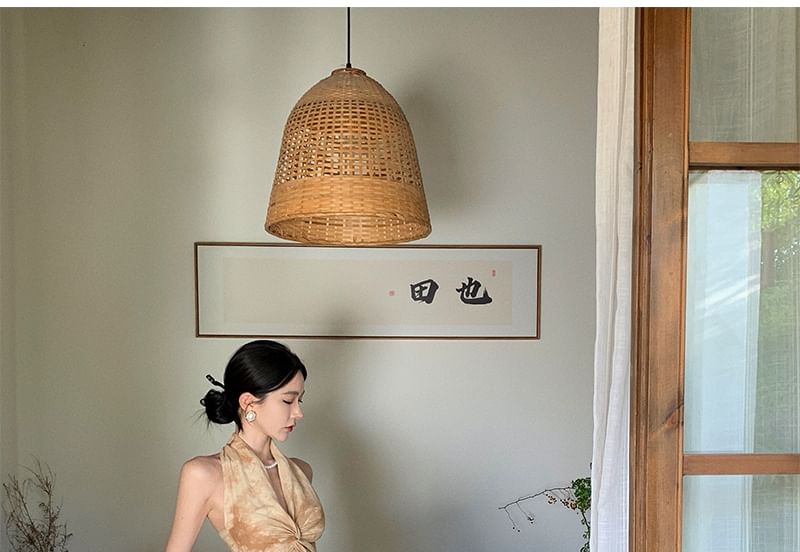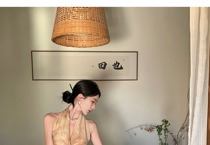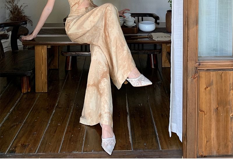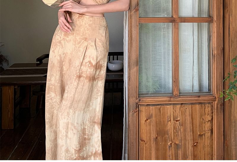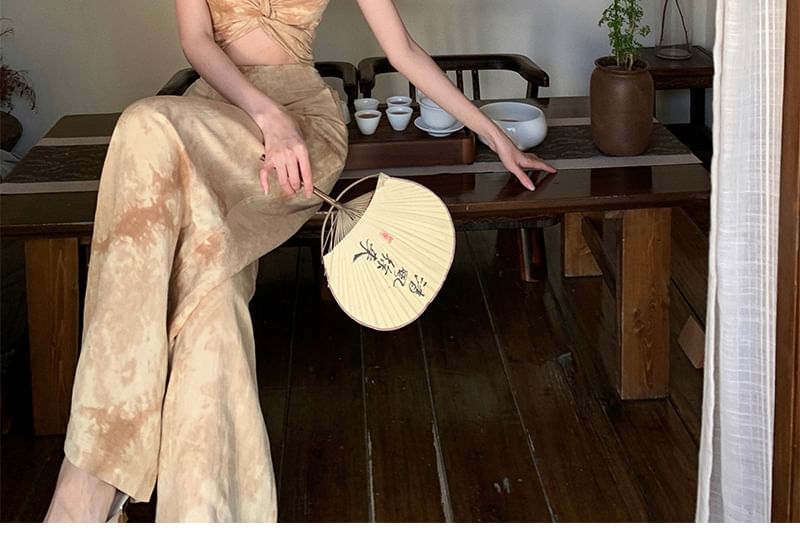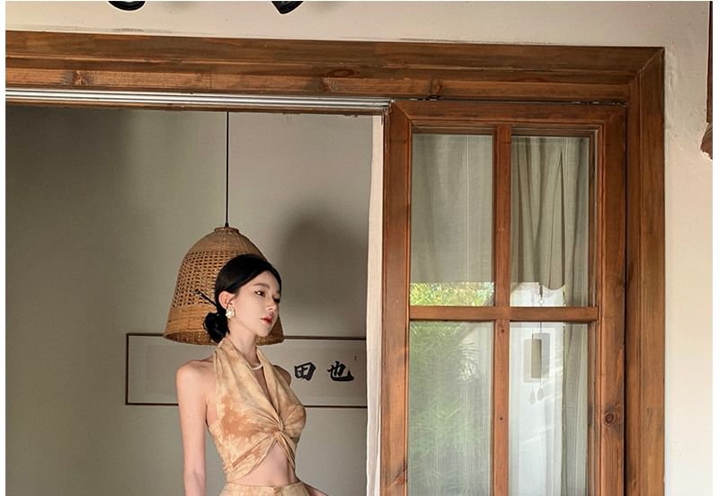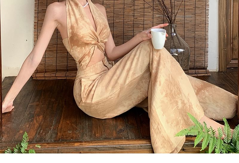 Set: Halter Print Twist Crop Tank Top + High Waist Culottes
