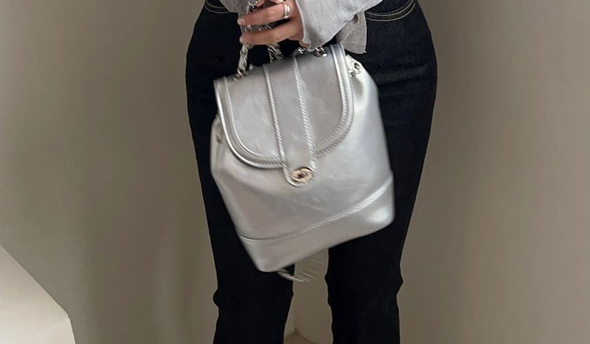 Set: Long-Sleeve Mock Neck Plain Top + Plain Bow Knit Camisole Top