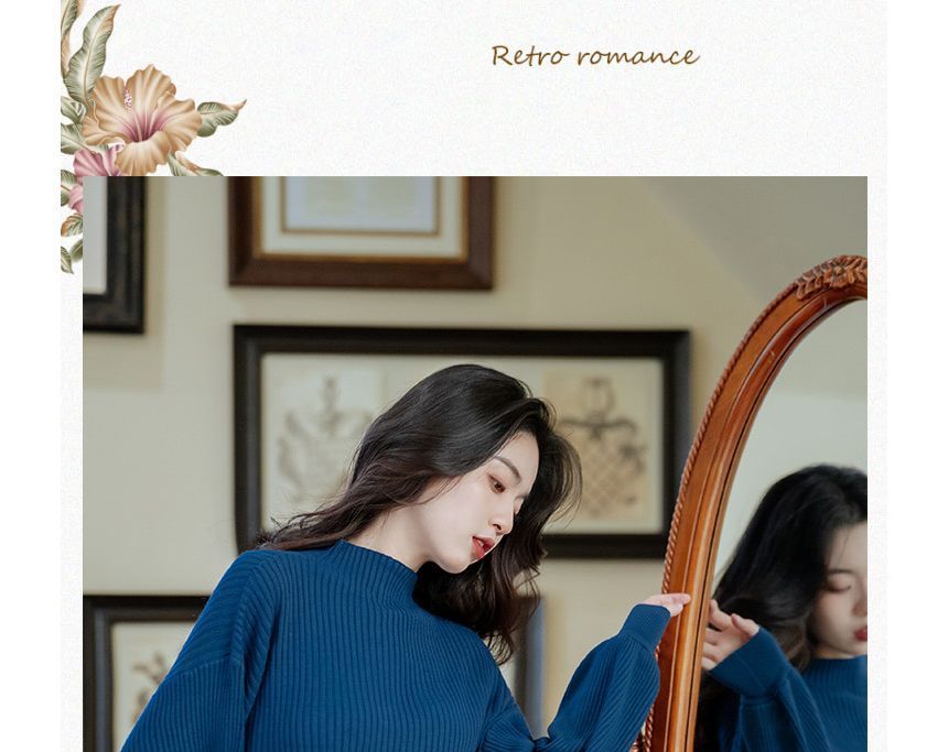 Set: Mock Neck Plain Sweater + Plaid Midi A