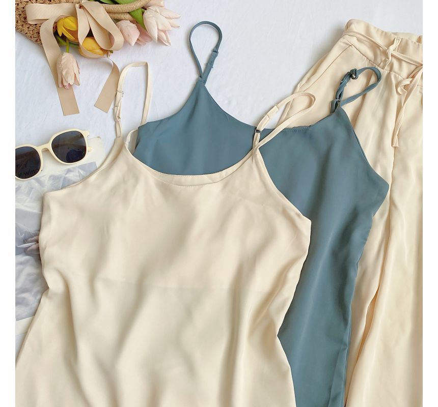 Set: Plain Camisole Top + High Waist Wide Leg Pants