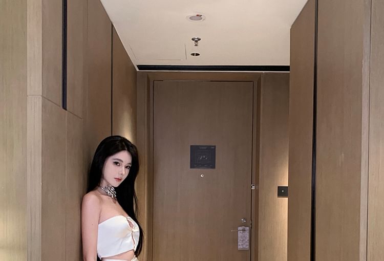 Set: Plain Cutout Tube Top + High Waist Midi Pencil Skirt