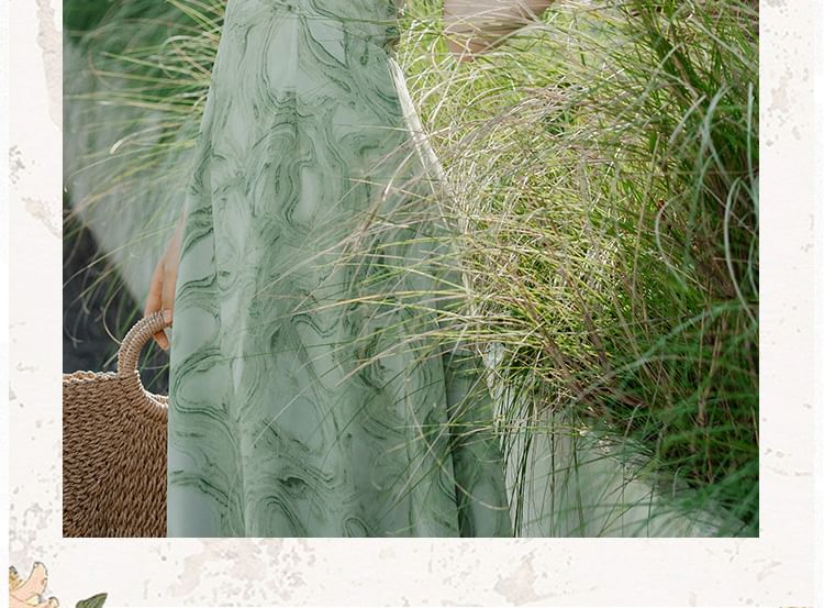 Set: Spaghetti Strap Tie-Dyed Shirred Midi A-Line Dress + Jacket