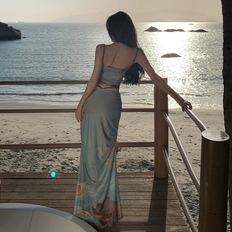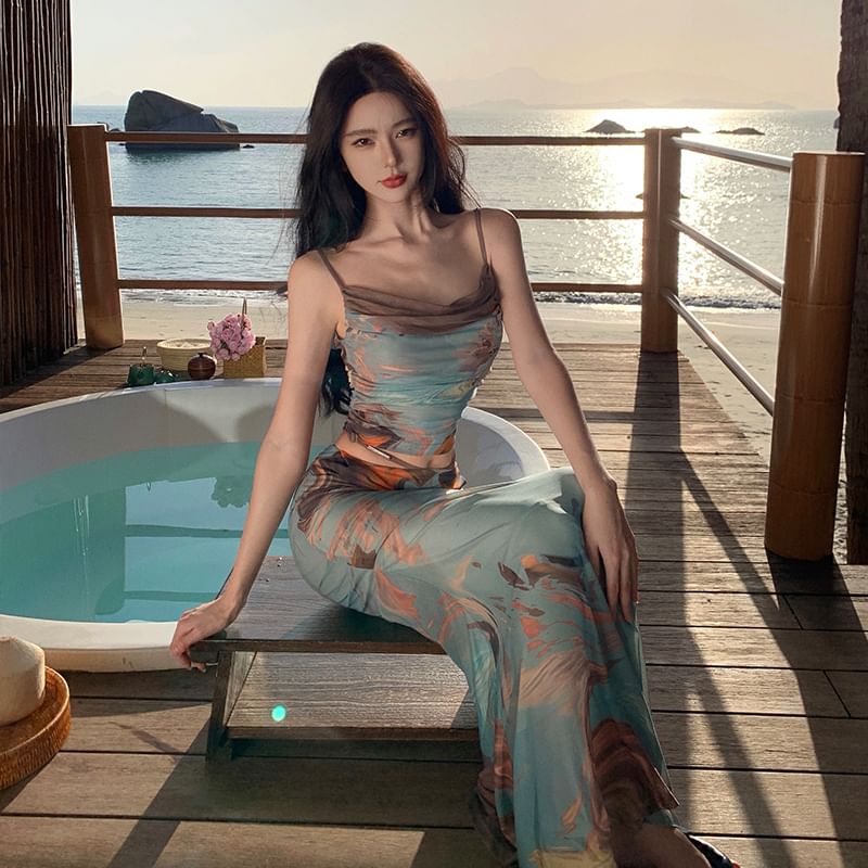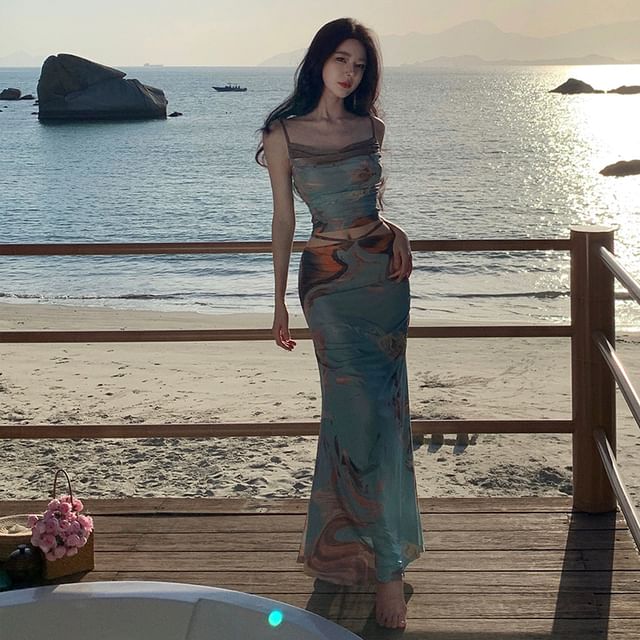 Set: Tie Dye Cami Top + High Rise Maxi Pencil Skirt