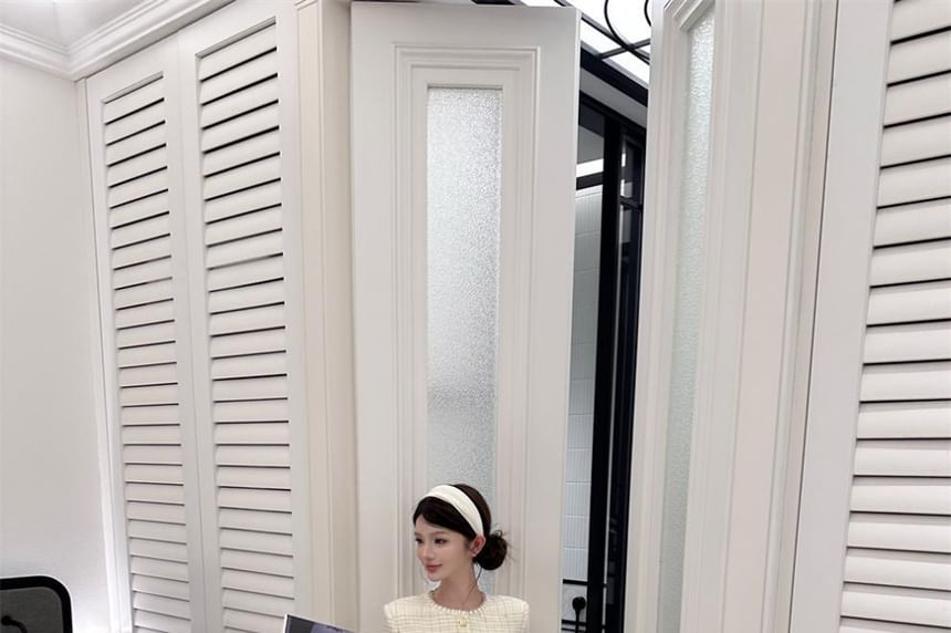 Set: Tweed Sequined Button-Up Jacket + High Rise Mini A-Line Skirt