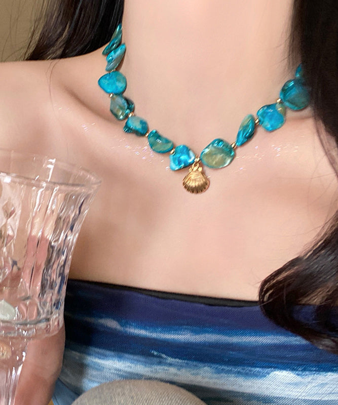 Fashion Blue Sterling Silver Overgild Shell Starfish Pendant Necklace