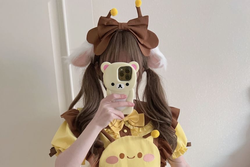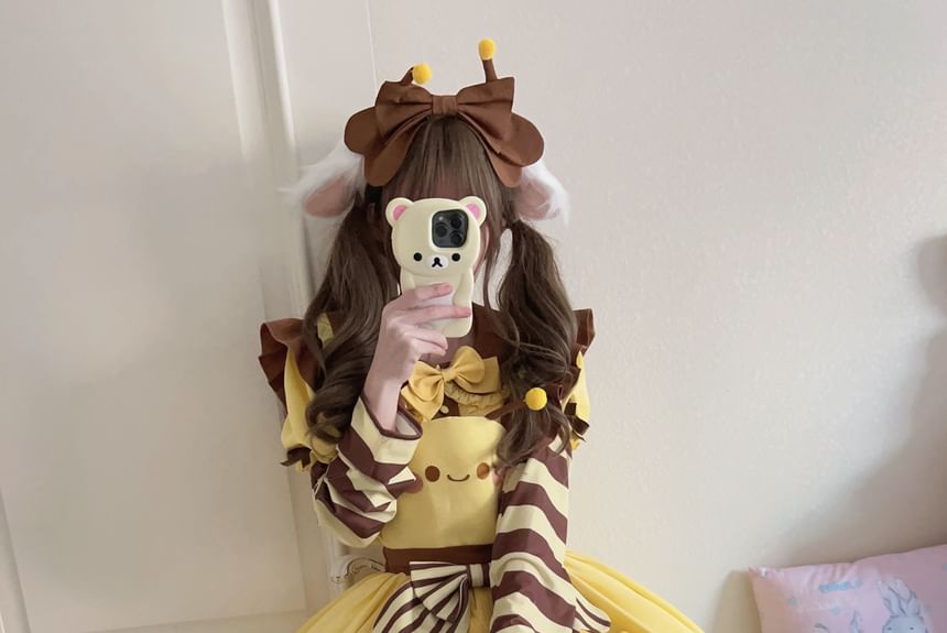 Short-Sleeve Bow Frill Trim Blouse / Bee Print A-Line Overall Dress / Jumper Shorts / Arm Sleeves / Bow / Underskirt / Headband / Set