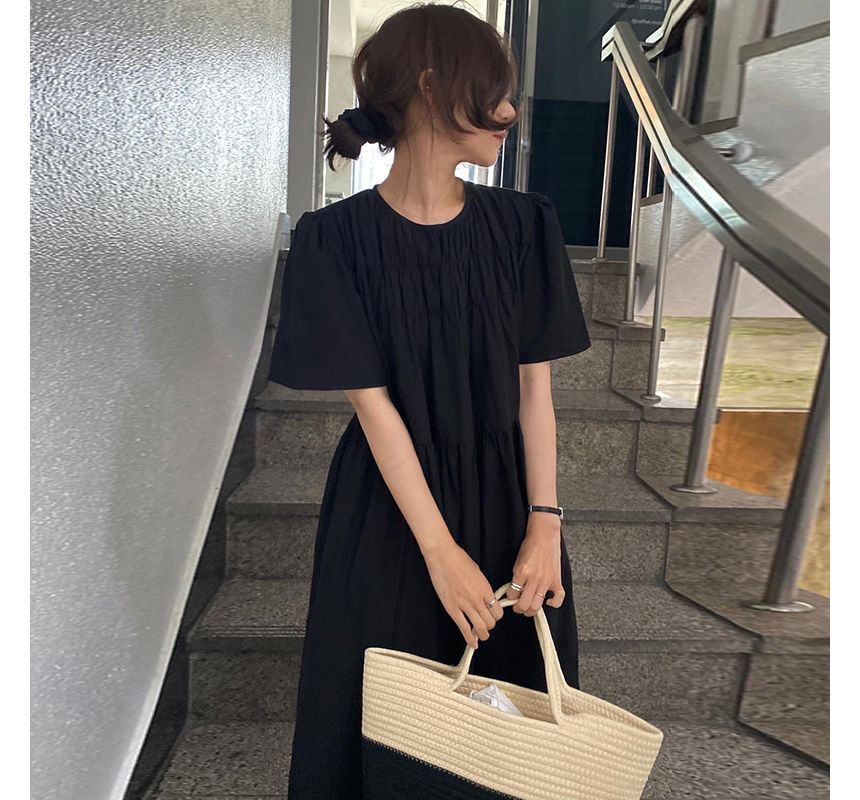 Short-Sleeve Crew Neck Plain Midi A-Line Dress