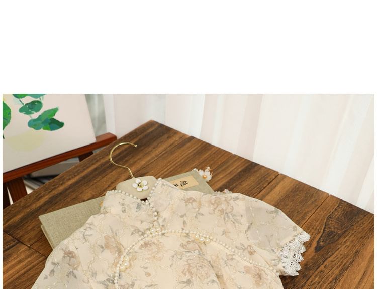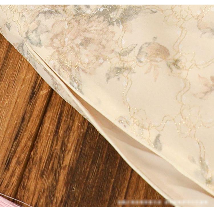 Short-Sleeve Lace Trim Floral Print Maxi Qipao Dress
