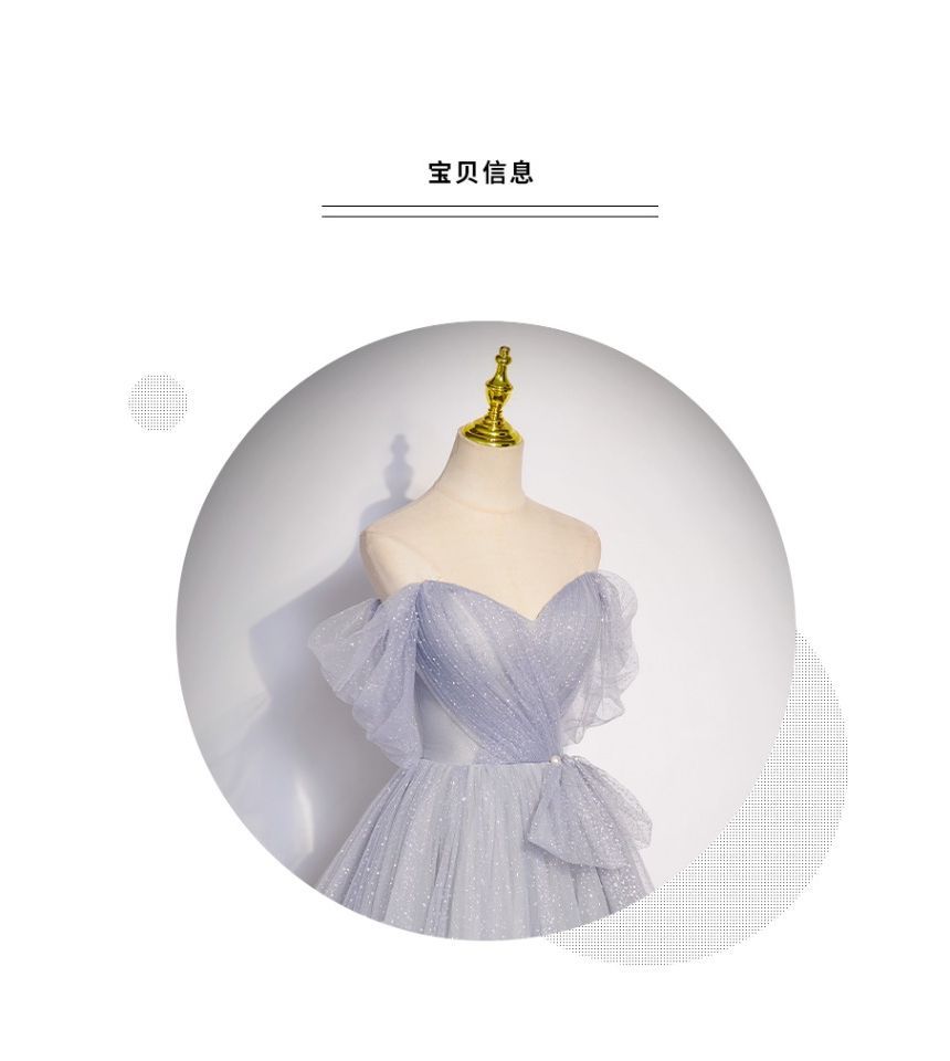 Short-Sleeve Off Shoulder Plain Glitter Mesh A-Line Evening Gown