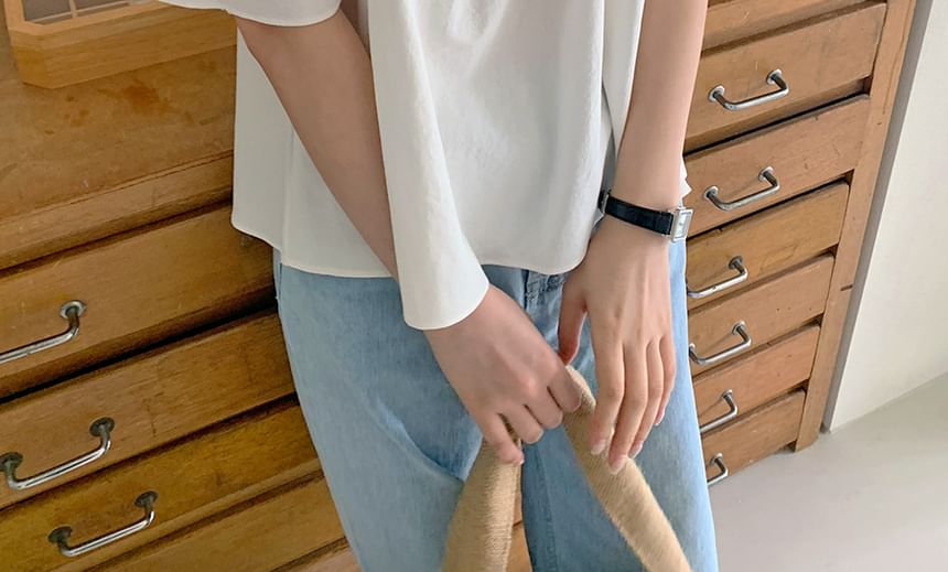 Short-Sleeve Off Shoulder Plain Top