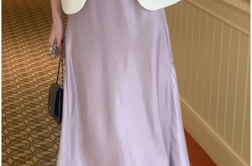Short-Sleeve Scoop Neck Plain Button Jacket