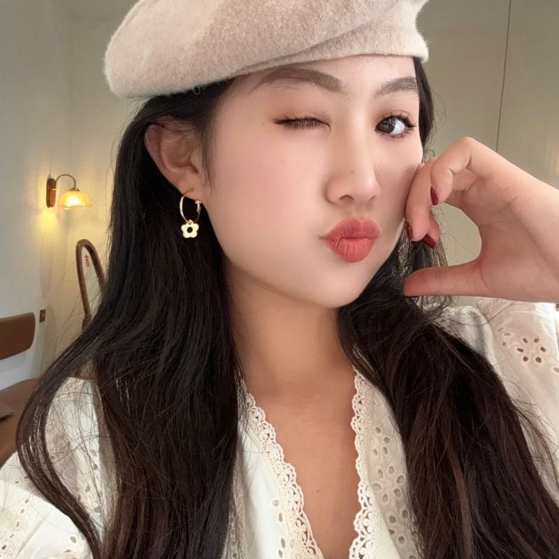 Silver Floral Earring Sterling Hoop