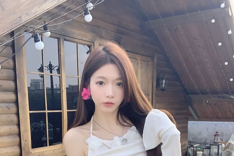 Mock Two-Piece Long-Sleeve Plain Top / High Rise Maxi A-Line Skirt
