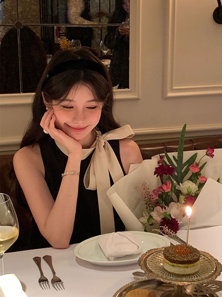 Sleeveless Bow Mini A-Line Dress