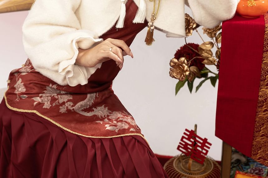 Sleeveless Dragon Lolita Embroidered Midi Qipao / Ruffle Trim Crop Jacket / Set