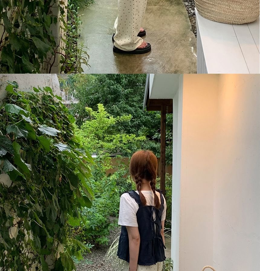 Sleeveless Ribbon Back Plain Flowy Top