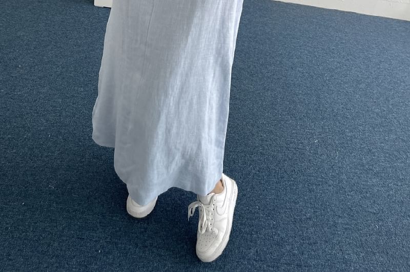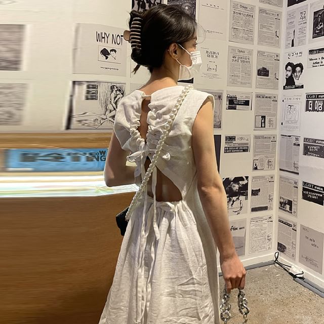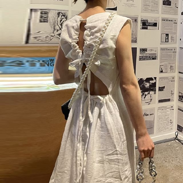 Sleeveless Round Neck Plain Open Back Midi A-Line Dress