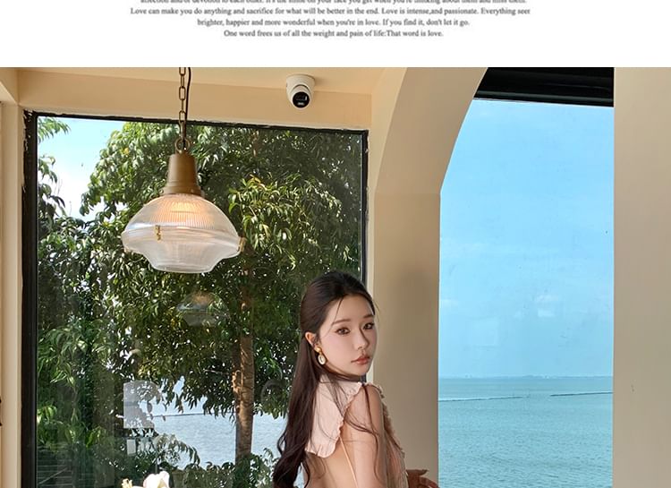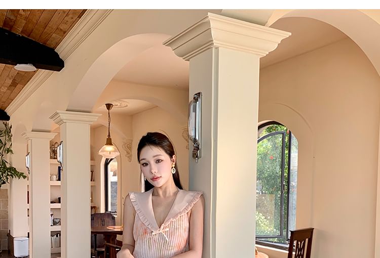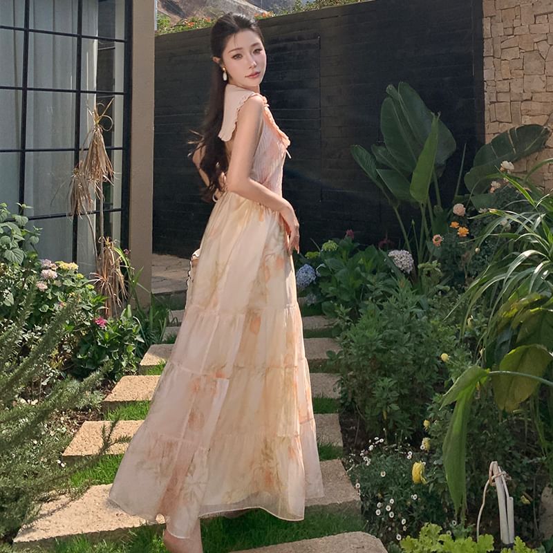 Sleeveless Sailor Collar Floral Open Back Tiered Mesh Maxi A