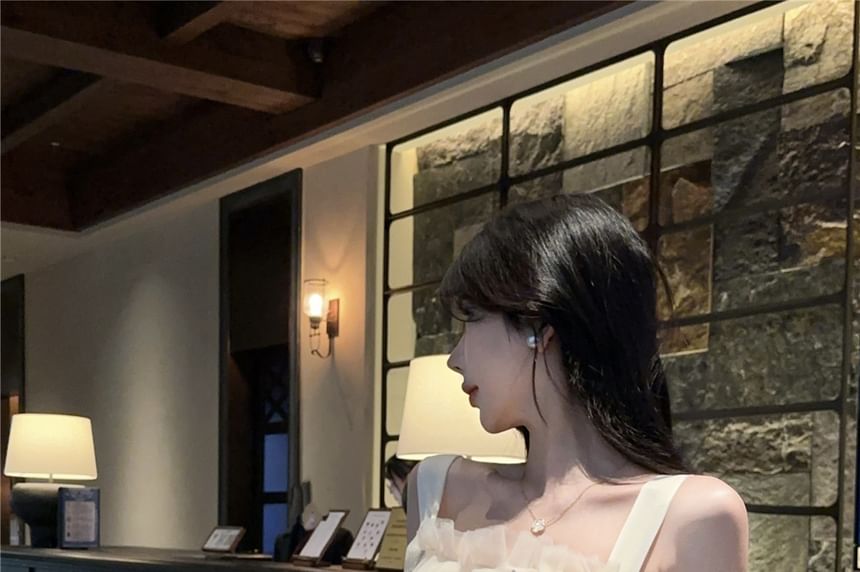 Butterfly Sequin Mesh Panel Padded Crop Slim Fit Tank Top