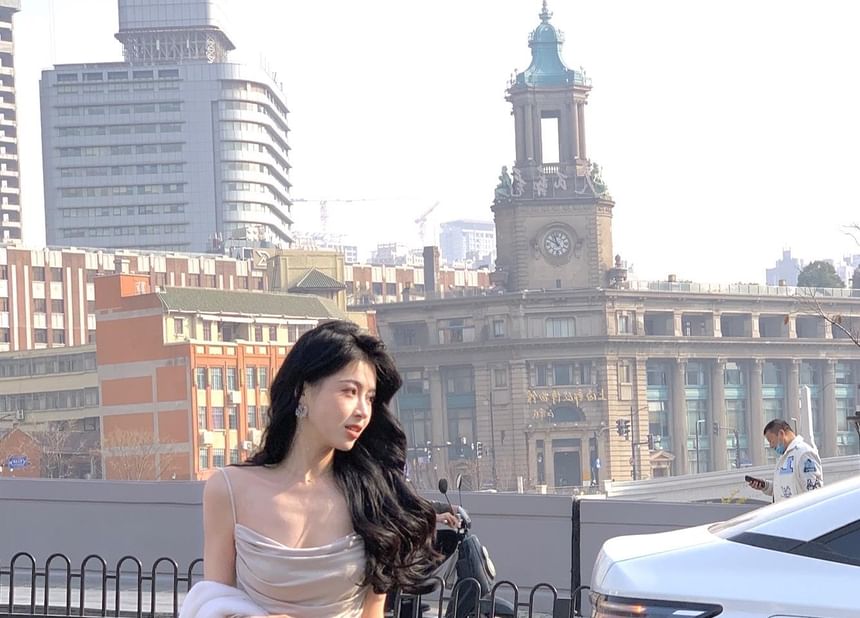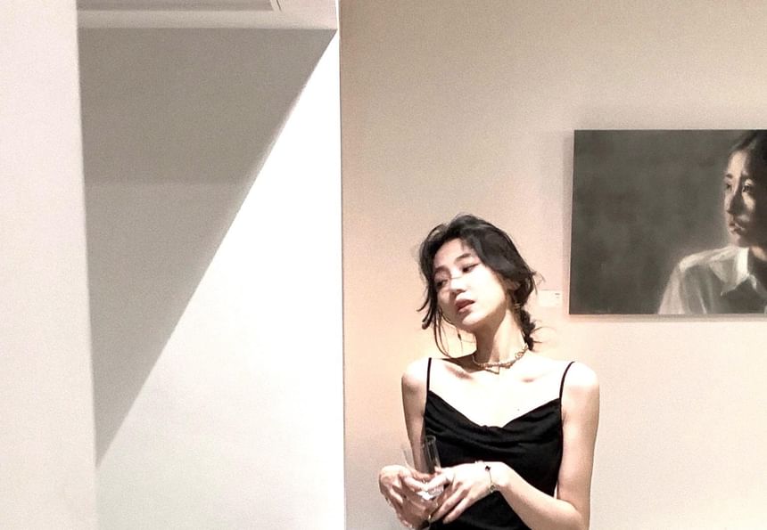 Spaghetti Strap Cowl Neck Plain Mermaid Evening Gown