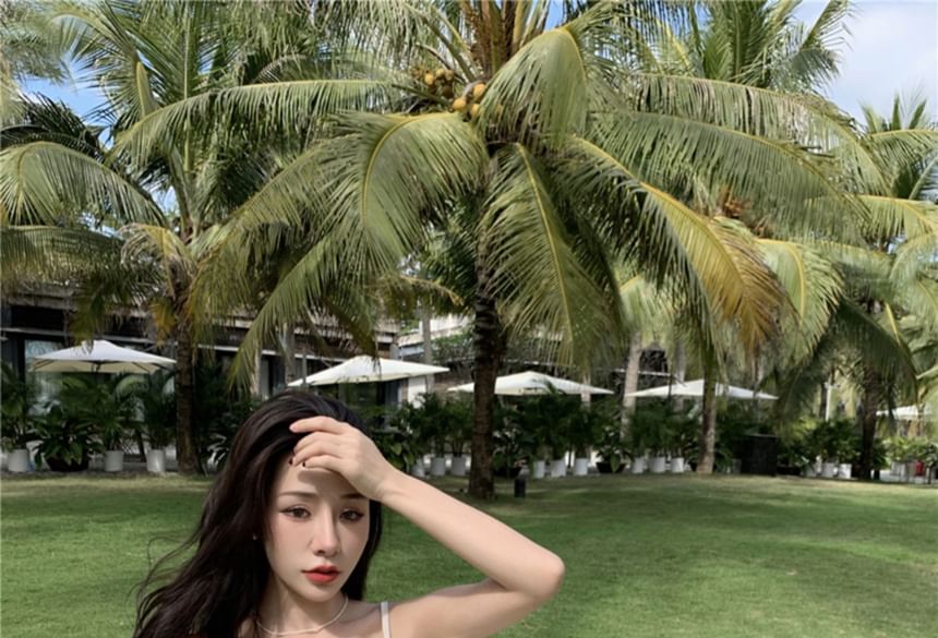 Spaghetti Strap Cowl Neck Plain Ruched Satin Slit Midi Sheath Dress