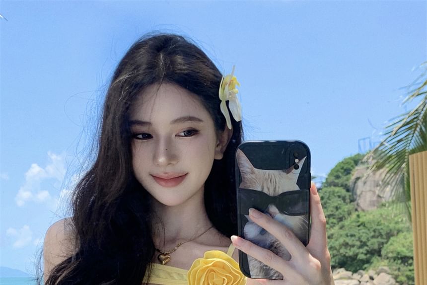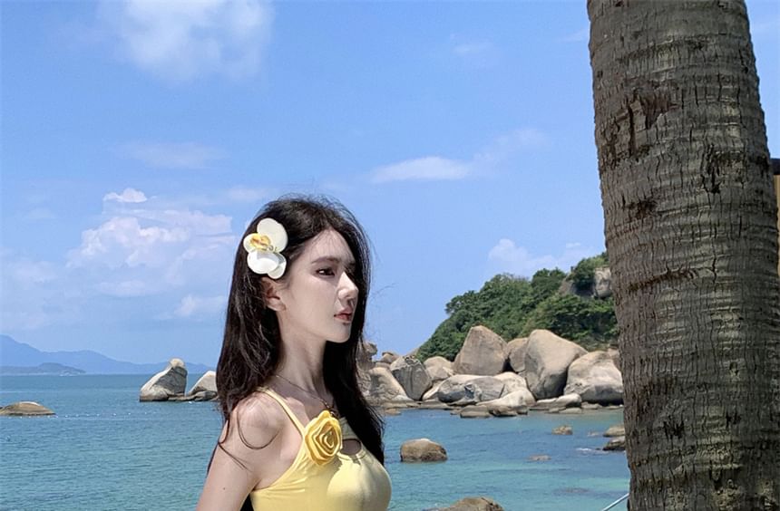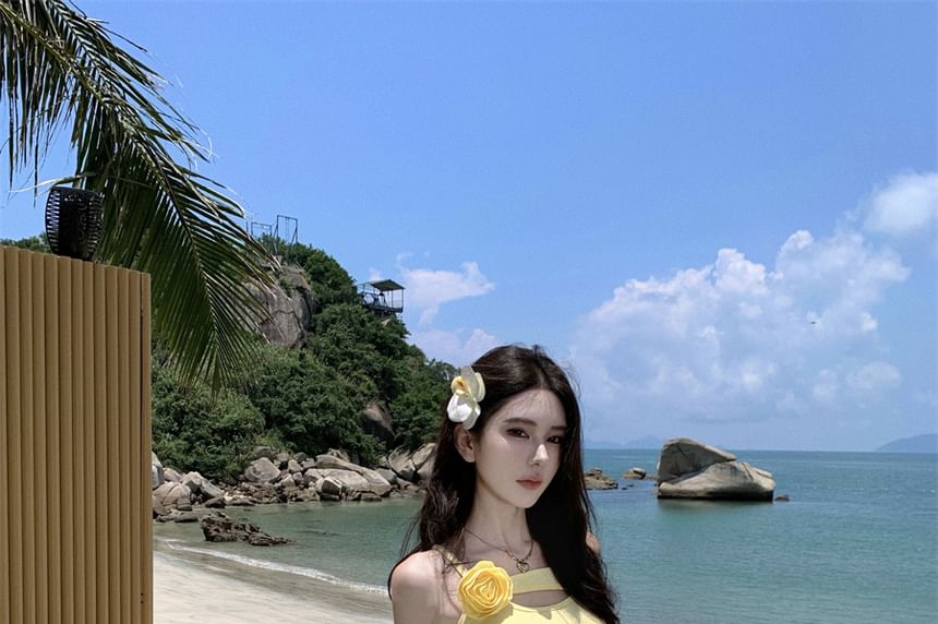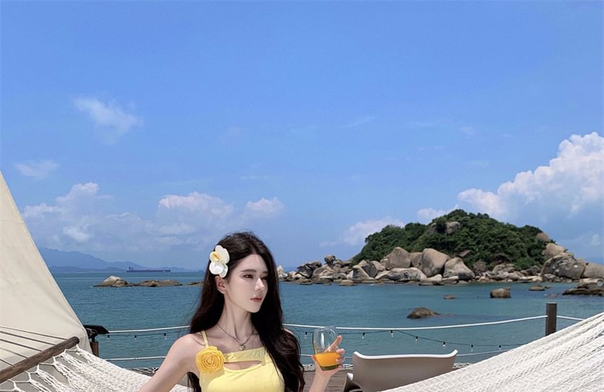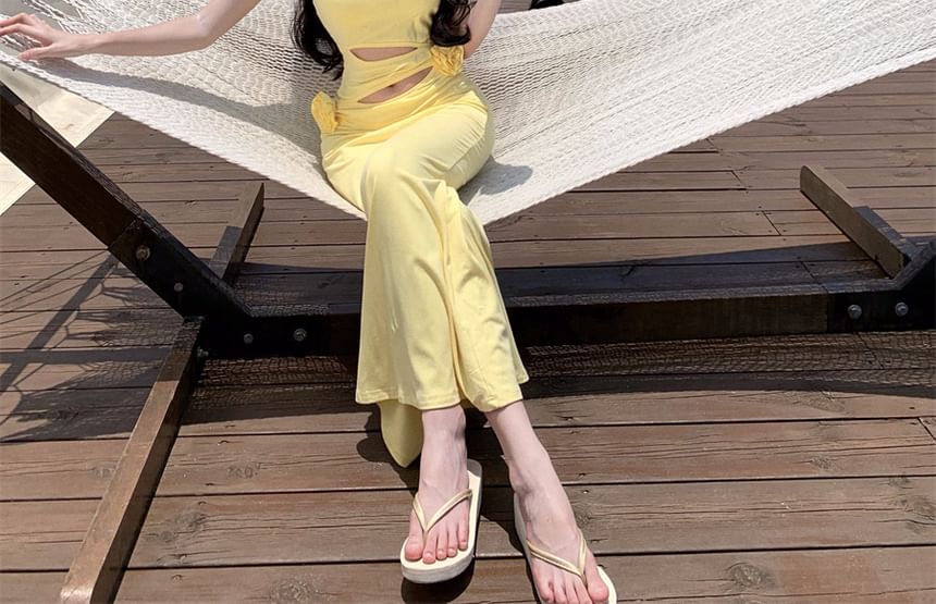 Spaghetti Strap Cutout Floral Applique Bodycon Maxi Dress