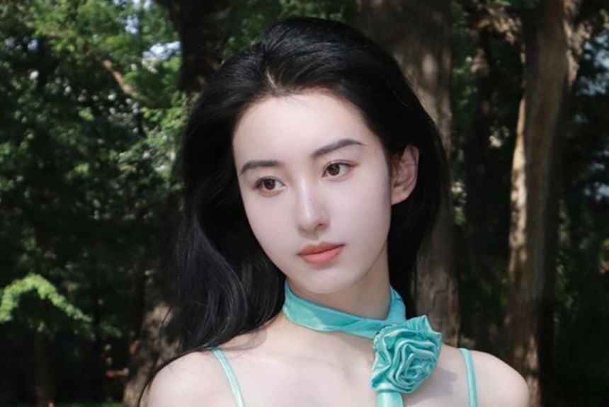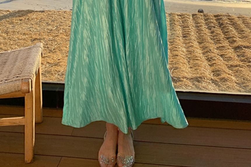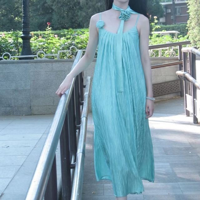 Spaghetti Strap Floral Accent Midi A-Line Dress