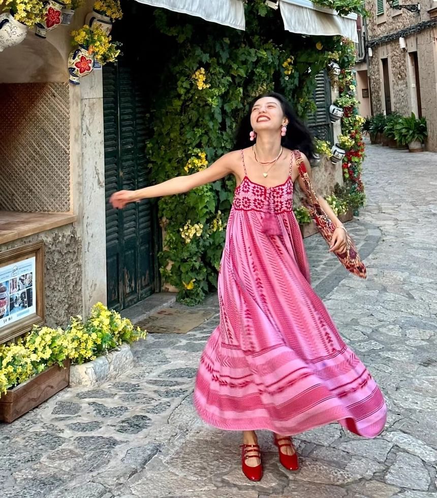 Spaghetti Strap Floral Embroidered Crochet Lace Panel Tasseled Midi Sundress