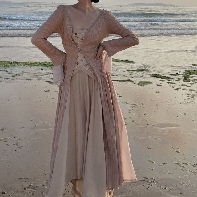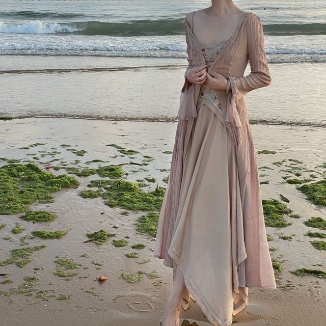 | Color: | Set - Dress & Cardigan - Red & Beige & Milk Tea & Pink |