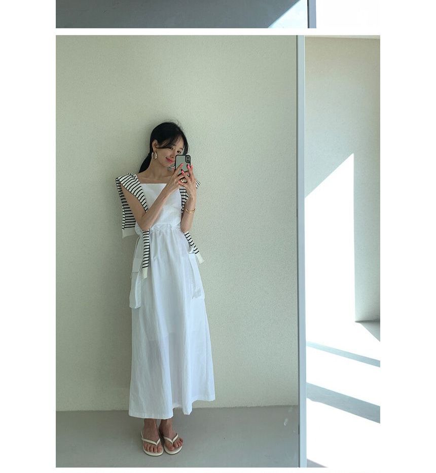 Spaghetti Strap Plain Drawstring Maxi Sundress