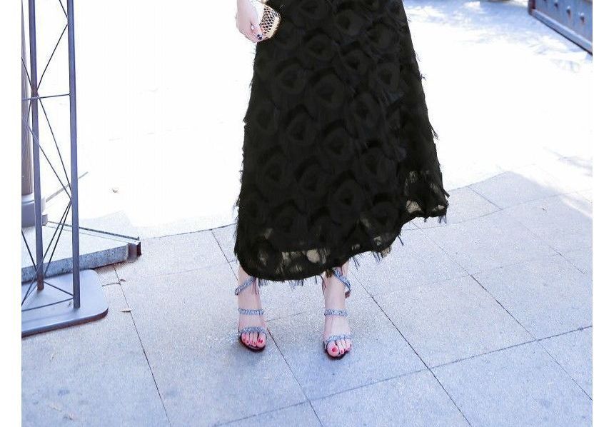 Spaghetti Strap Plain Fringed Trim A-Line Evening Dress