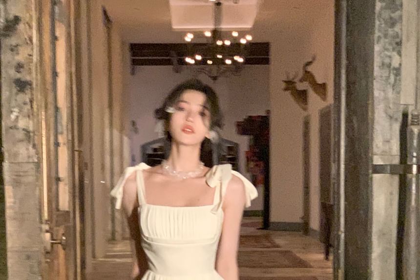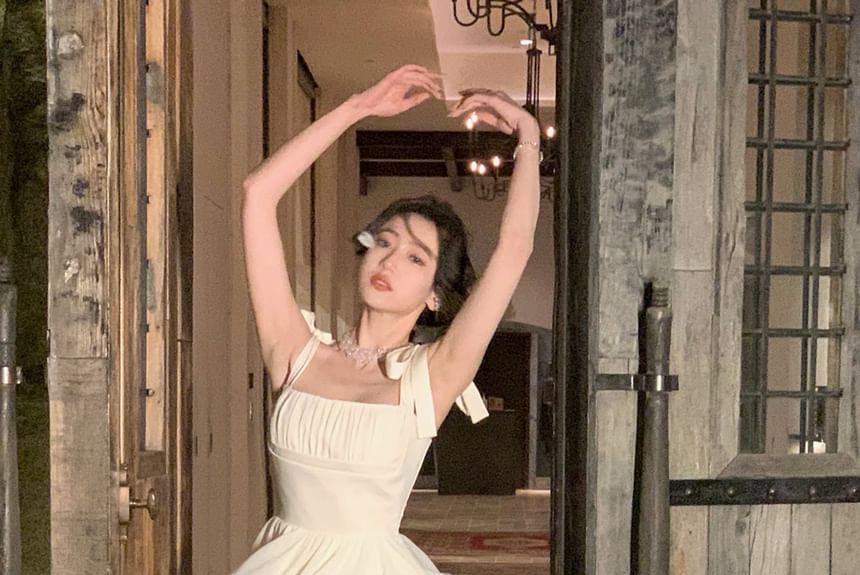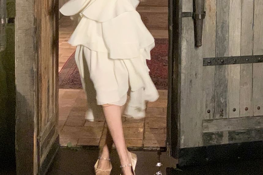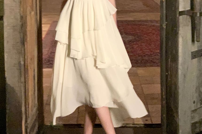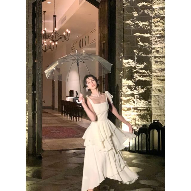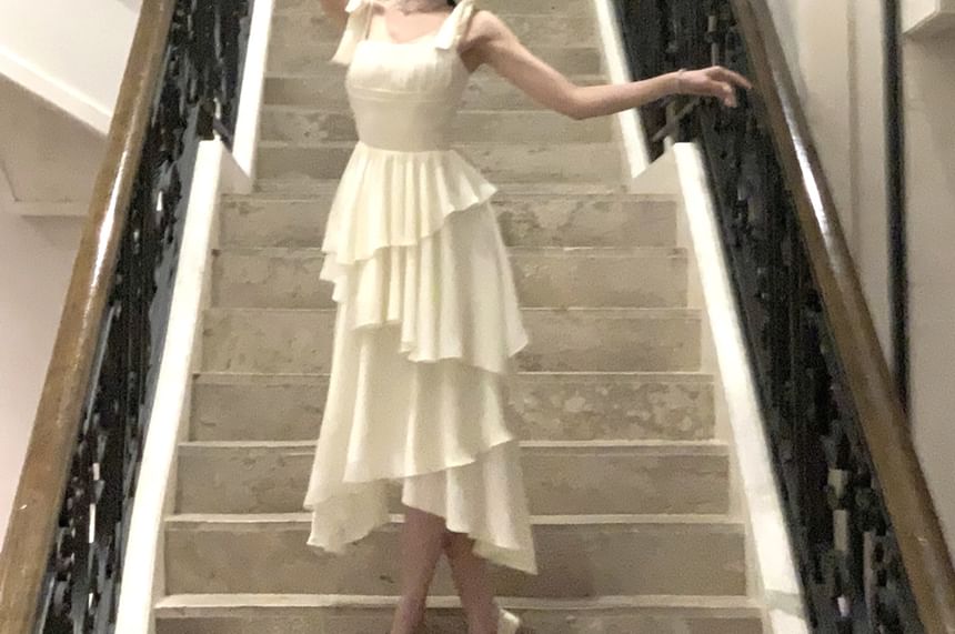 Spaghetti Strap Plain Irregular Layered Midi A-Line Dress