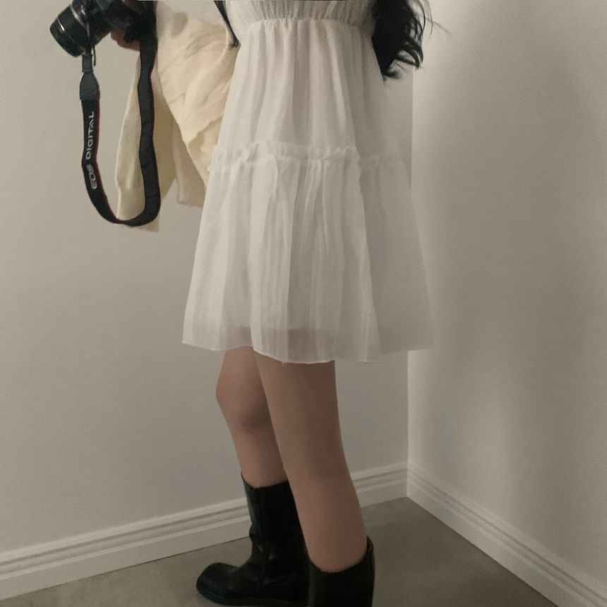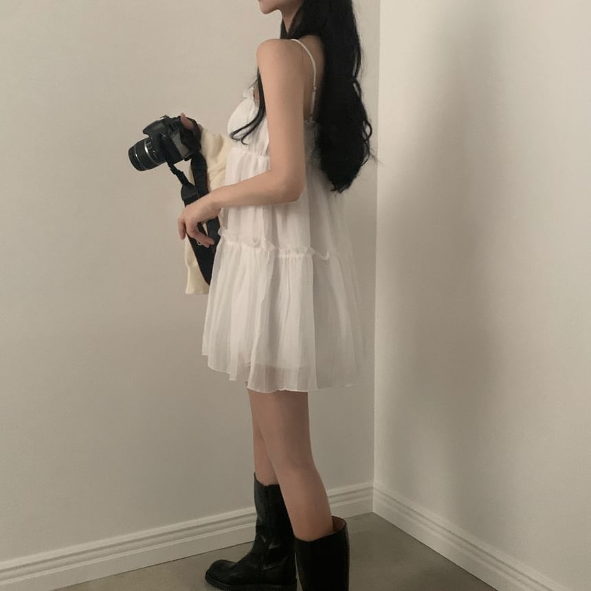 Spaghetti Strap Plain Ruffle Trim Mini A-Line Dress