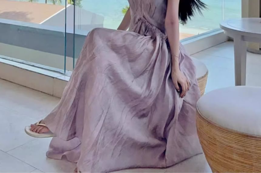 Spaghetti Strap Plain Shirred Open Back Midi Sundress