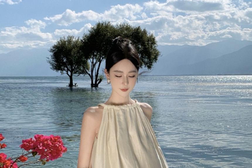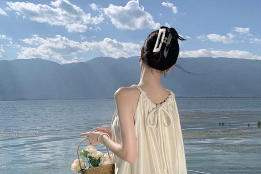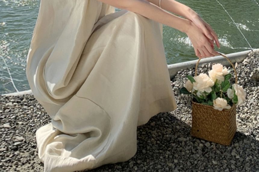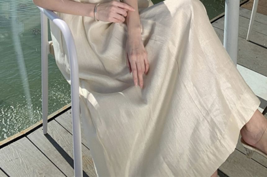 Spaghetti Strap Scoop Neck Plain Cutout Maxi Shift Dress