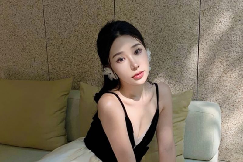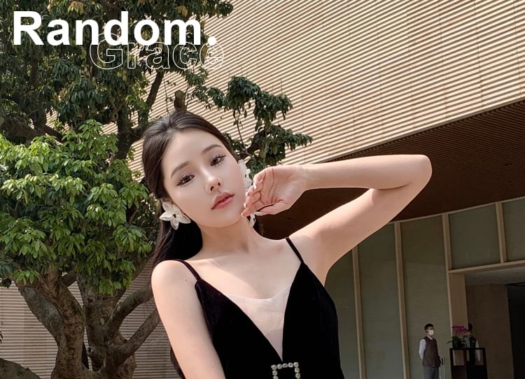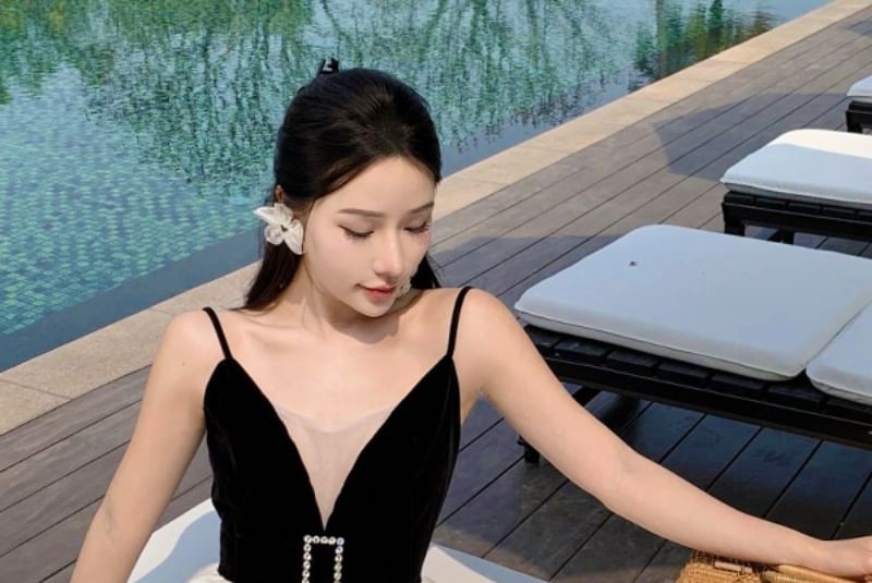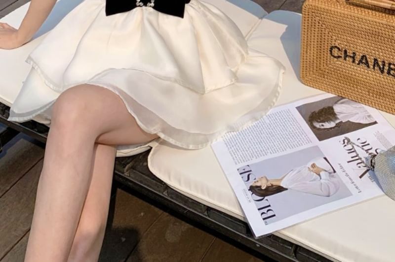 Spaghetti Strap Two Tone Bow Ruffle Panel Mesh Mini A-Line Dress