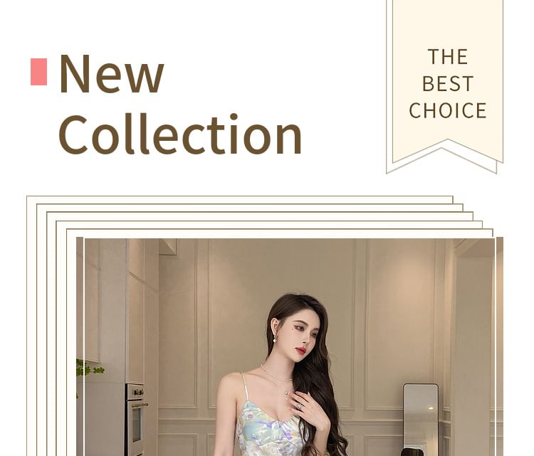 Spaghetti Strap V-Neck Floral Print Maxi Mermaid Dress