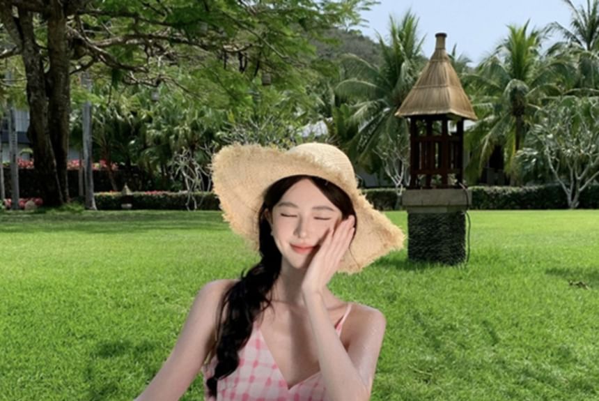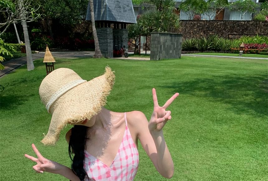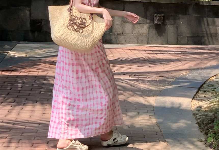 Spaghetti Strap V-Neck Plaid Maxi A-Line Dress
