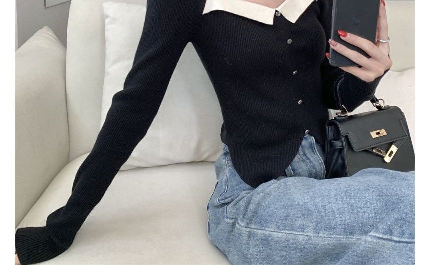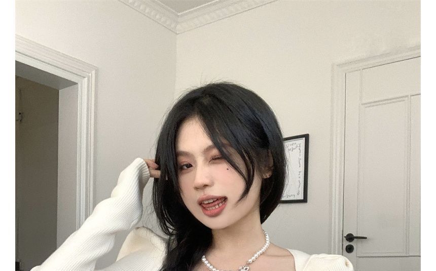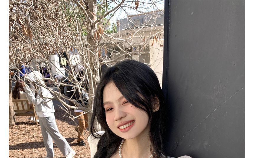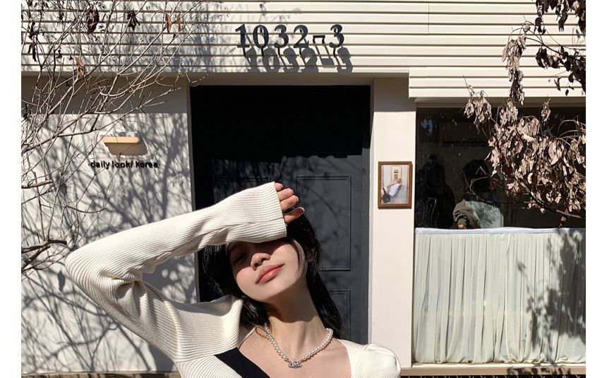 Square-Neck Slim-Fit Top Puff-Sleeve Knit