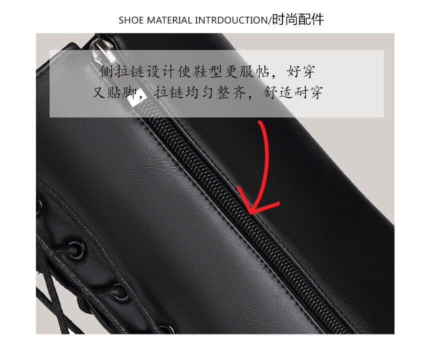 Square Toe Platform Lace Up Block Heel Knee High Boots